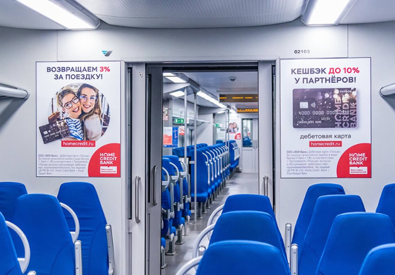 Приводим примеры монтажа рекламы в электричках: