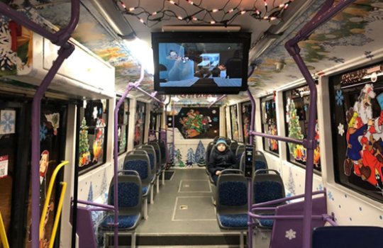 Брендирование салона трамвая на фото выше