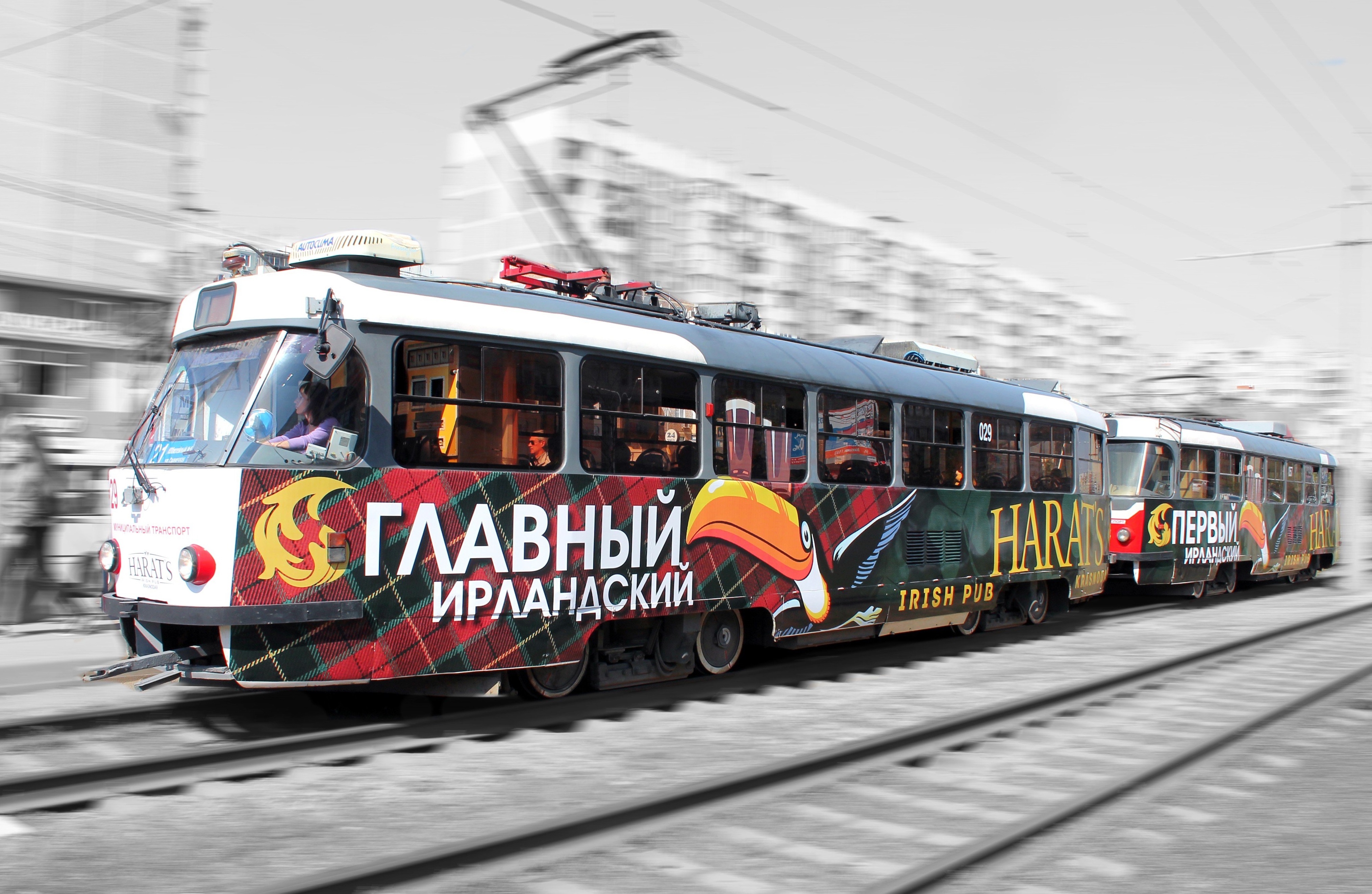 Оклейка правого борта трамвая на фото выше