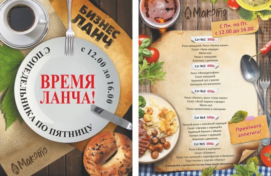 Пример печатных рекламных материалов в кафе: