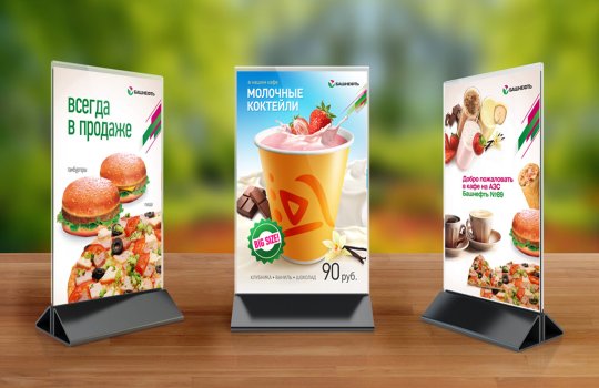 Примеры наших работ при размещении рекламы в кафе представлены ниже: