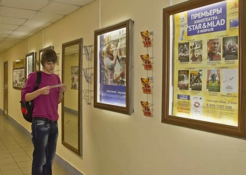 Реклама в ВУЗах отличается тем, что рекламные материалы располагаются на уровне глаз потенциального клиента или покупателя. Удачное расположение рекламы приводит к тому, что листовки, буклеты и другие форматы рекламы в ВУЗах (институтах, университетах, академиях и т.д.) хорошо видны и обеспечивают 100% читаемость со стороны посетителей.
